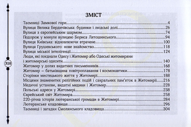 | Краткое описание: | [У книзі вміщено докладно розроблені тематичні екскурсії містом Житомиром, під час яких ви дізнаєтеся багато нового про історію нашого міста. З допомогою цієї книги ви зможете самостійно вивчати наше місто або використати її з метою самопідготовки до проведення власних екскурсій]. |